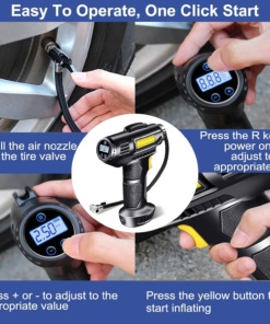 Jednostavno za upotrebu – Naša bežična zračna pumpa automobila pomoću punjivog akumulatora, nije potrebno vanjsko napajanje. Ovaj bežični dizajn olakšava upotrebu i pohranu bilo gdje, a njegova kompaktna veličina omogućuje vam pohranjivanje u ruksake, džepove i konzole automobila. Spremite vam put do benzinske postaje kako biste napuhali gume!
