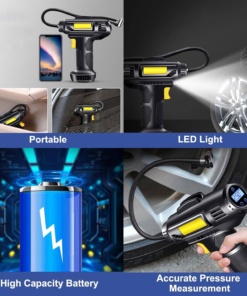 Brzo napuhavanje – Naš prijenosni kompresor zraka omogućuje vam da napuhate gume brzo i lako, uzimajući samo 1 minutu za ravnu gumu, Ugrađeno LED svjetlo, naš bežični napuhavanje guma pruža svijetlo osvjetljenje noću ili u uvjetima slabog osvjetljenja. Posebno je korisno na tamnim mjestima gdje trebate popraviti gumu ili napuhati predmet u hitnim slučajevima.
