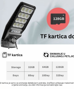 💡2- Solarni reflektor radi samo s detektorom pokreta. Kada detektira pokret, radi na 100% snage 6 sekundi.