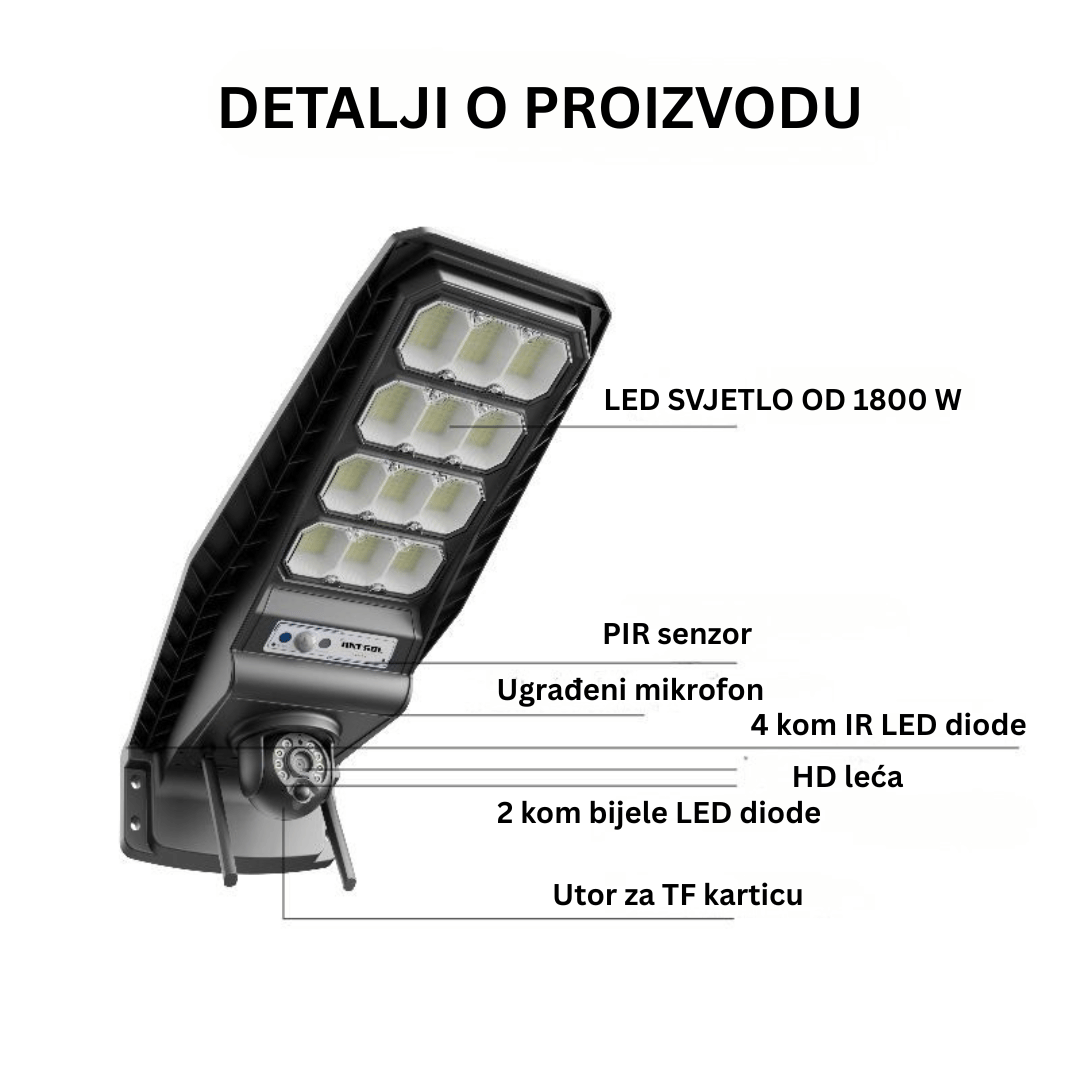 Solarna ulična svjetiljka od 1800 W s ugrađenom CCTV kamerom (BESPLATNA DOSTAVA)