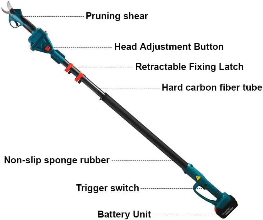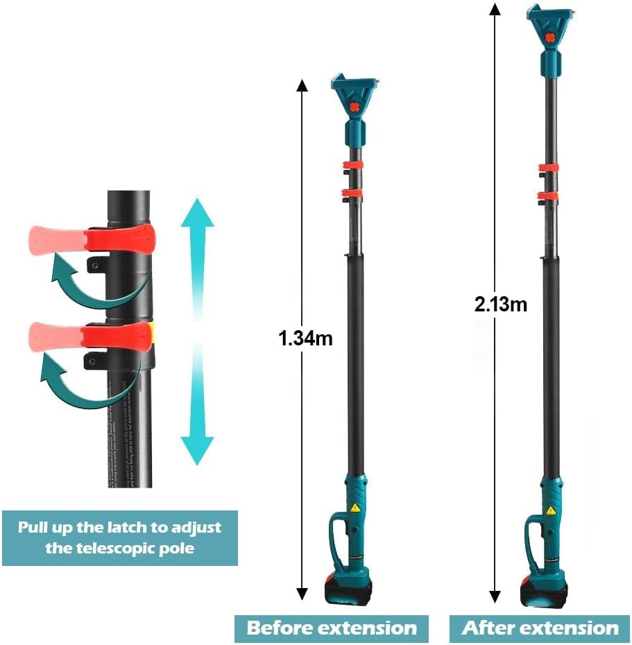 ✅Teleskopski štap: Opremljen teleskopskim štapom koji se može produžiti do maksimalno 2,13 metra, omogućujući vam dosezanje visokih grana ili teško dostupnih područja bez potrebe za ljestvama ili penjanjem.